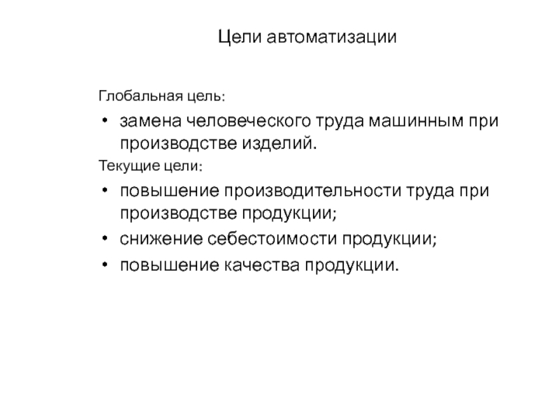 «В основе понятия автоматизации производственных процессов лежит замена физического и умственного труда человека машинным трудом»