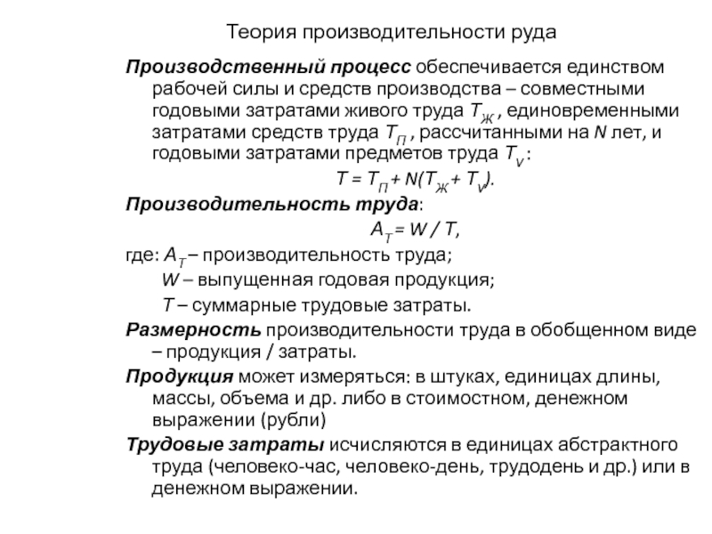 производства – совместными годовыми затратами живого труда ТЖ , единовременными