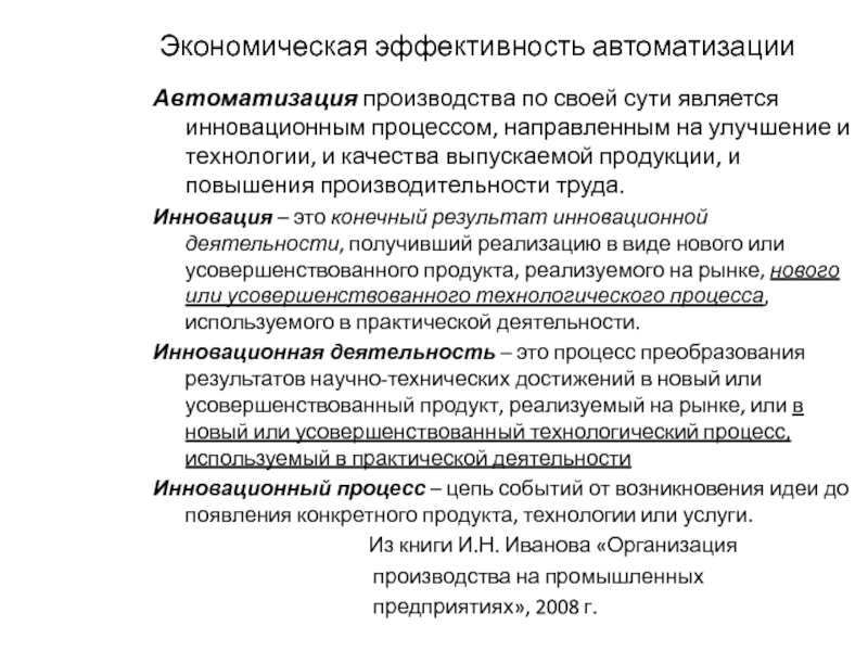 Слайд 2«Автоматизация производственных процессов - совокупность мероприятий по разработке прогрессивных технологий,