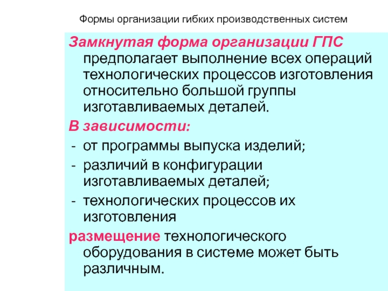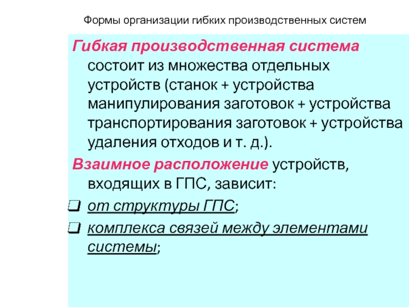 Взаимное расположение устройств, входящих в ГПС, зависит: