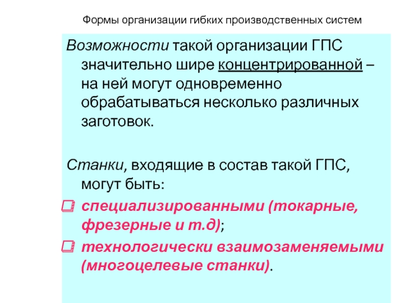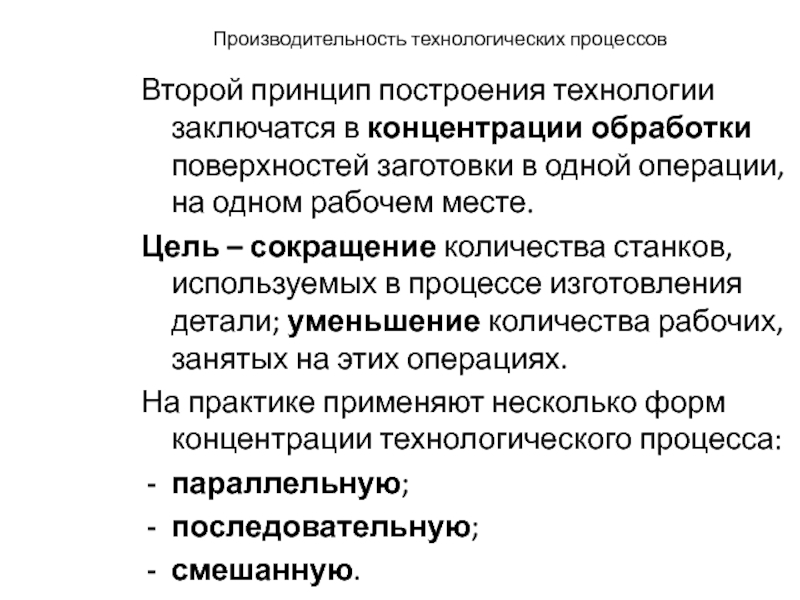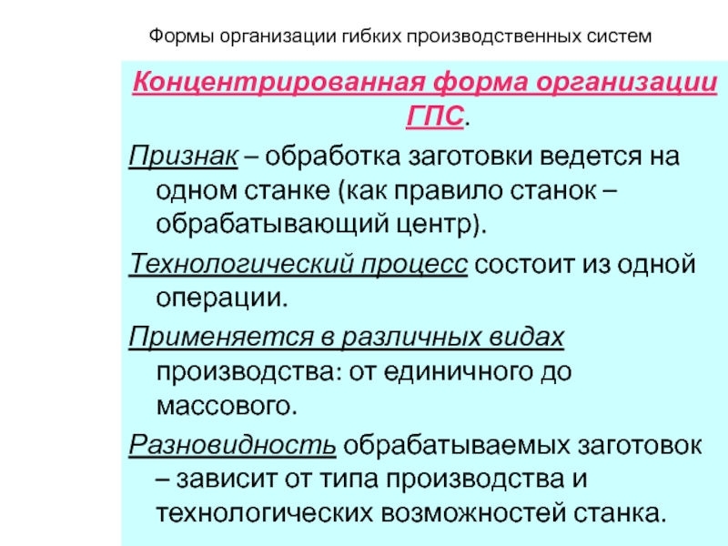 концентрированной – на ней могут одновременно обрабатываться несколько различных заготовок.