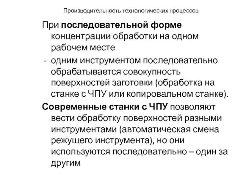 заготовки ведется на одном станке (как правило станок – обрабатывающий