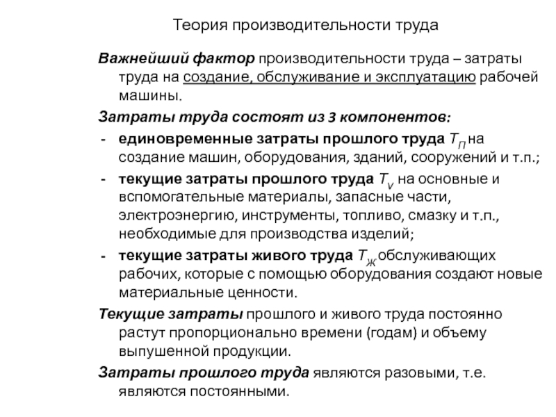 Затраты прошлого труда являются разовыми, т.е. являются постоянными.