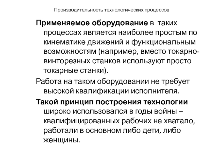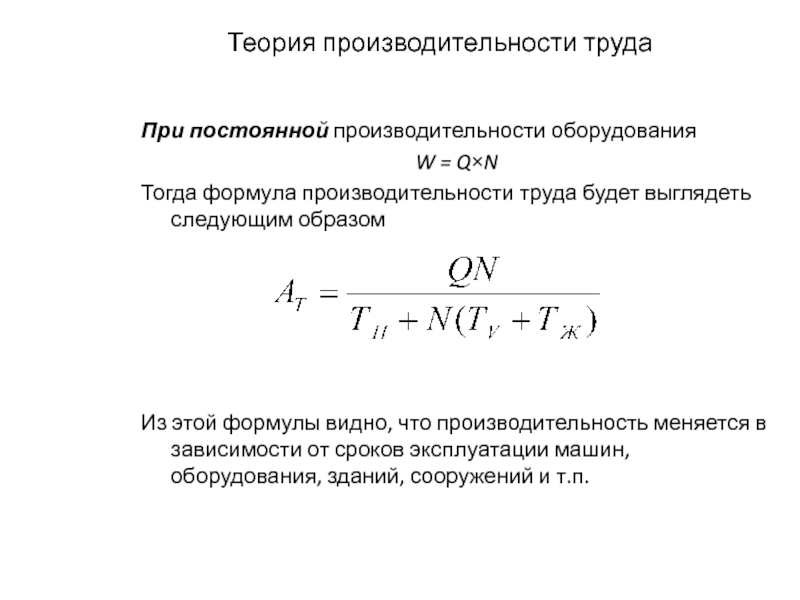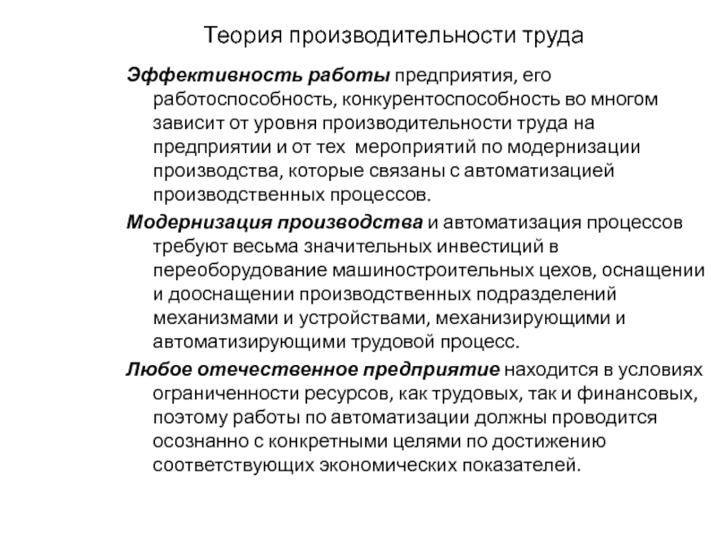 Данная теория связывает технические характеристики машины, оборудования с результатами производительности процесса и получаемыми экономическими показателями от реализации произведенной на данном оборудовании продукции.