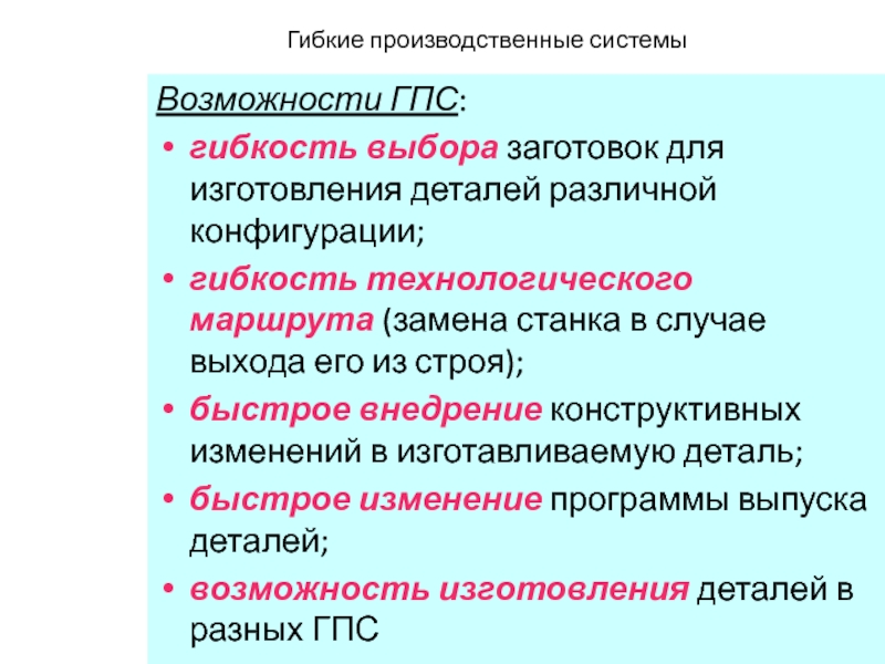 гибкость технологического маршрута (замена станка в случае выхода его из