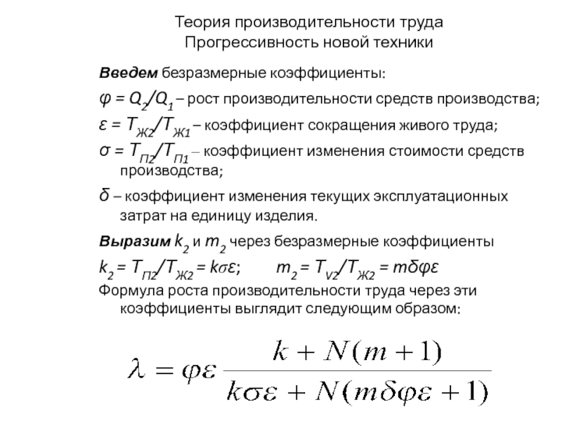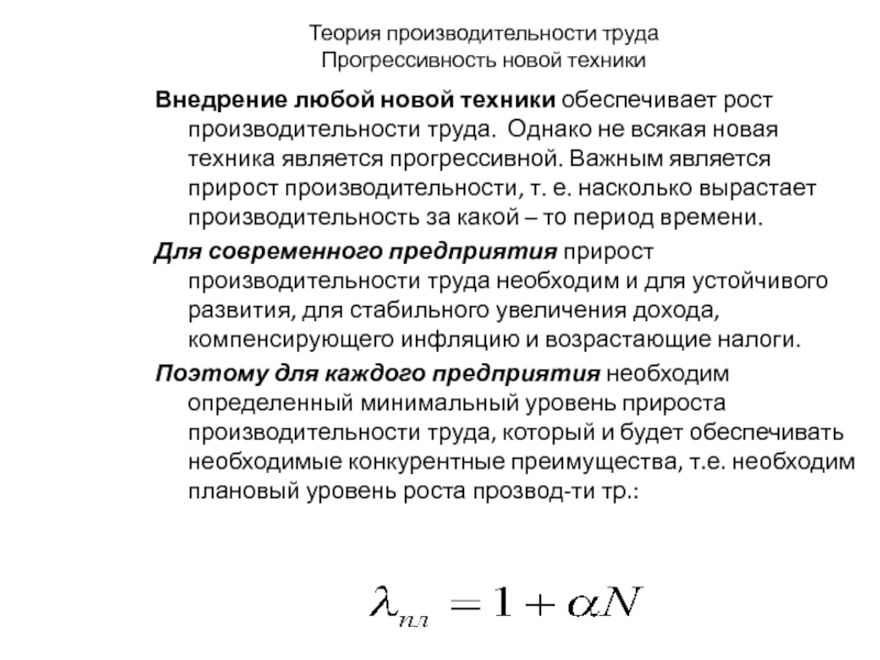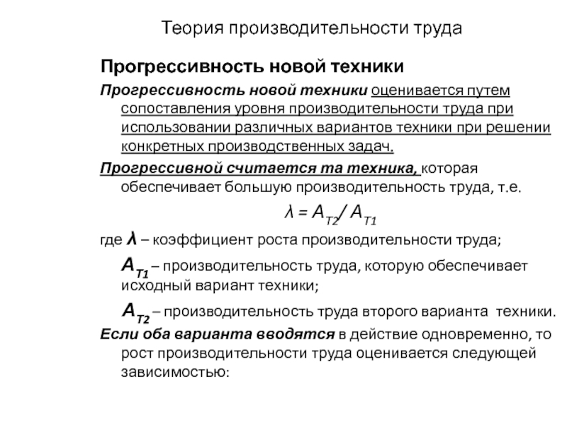 8) Прогрессивность новой техники оценивается сопоставлением уровня производительности труда.