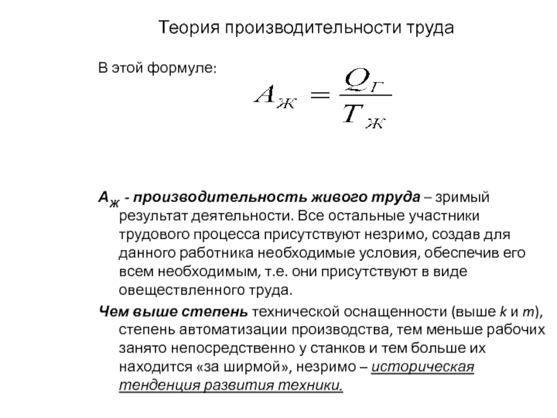 Принимая живой труд за меру (масштаб) оценки прошлого труда, эти затраты можно выразить в единицах живого труда: