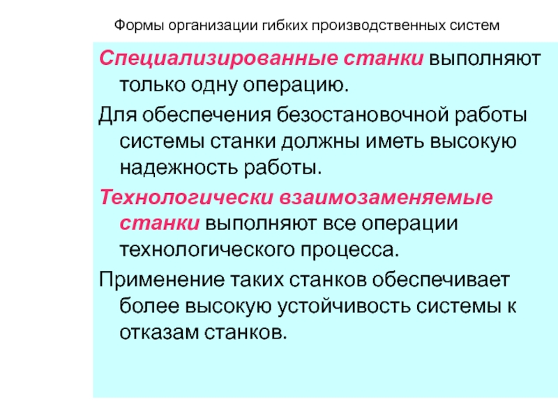 Применение таких станков обеспечивает более высокую устойчивость системы к отказам станков.