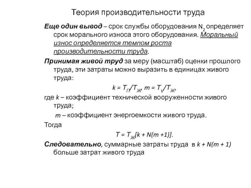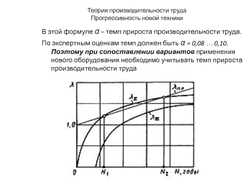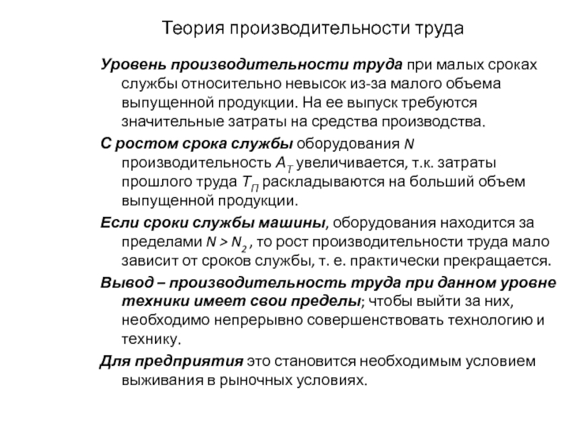 Если сроки службы машины, оборудования находится за пределами N > N2 , то рост производительности труда мало зависит от сроков службы, т. е. практически прекращается.