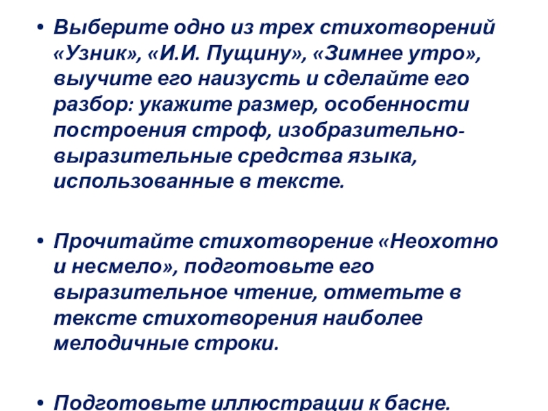Учитель может организовать словарную работу: составить вместе с учащимися словарик архаизмов и старославянизмов, использованных в стихотворении (с «переводом»).