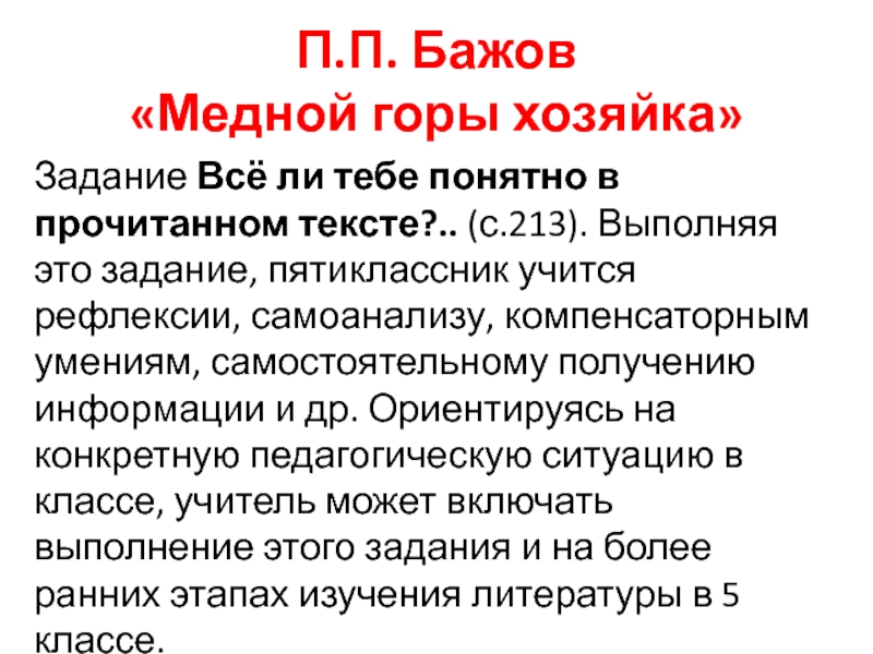 в прочитанном тексте?.. (с.213). Выполняя это задание, пятиклассник учится рефлексии,