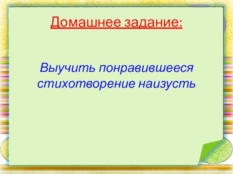 Домашнее задание:Выучить понравившееся стихотворение наизусть