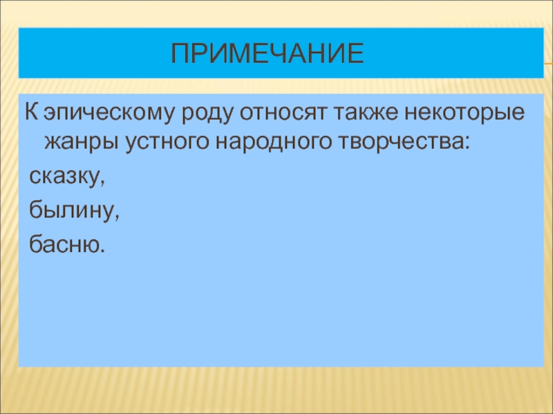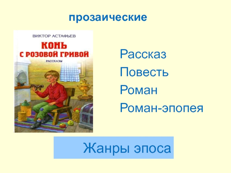 Слайд 5 Эпос – представляет собой связный рассказ о тех или иных