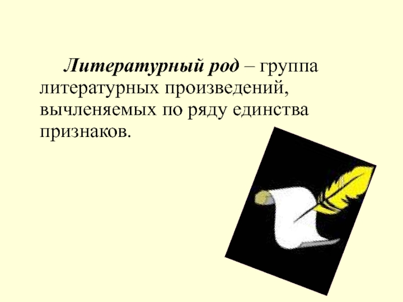 Слайд 3 Литературный род – группа литературных произведений, вычленяемых по ряду единства