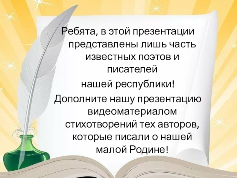 Слайд 18Ребята, в этой презентации представлены лишь часть известных поэтов и