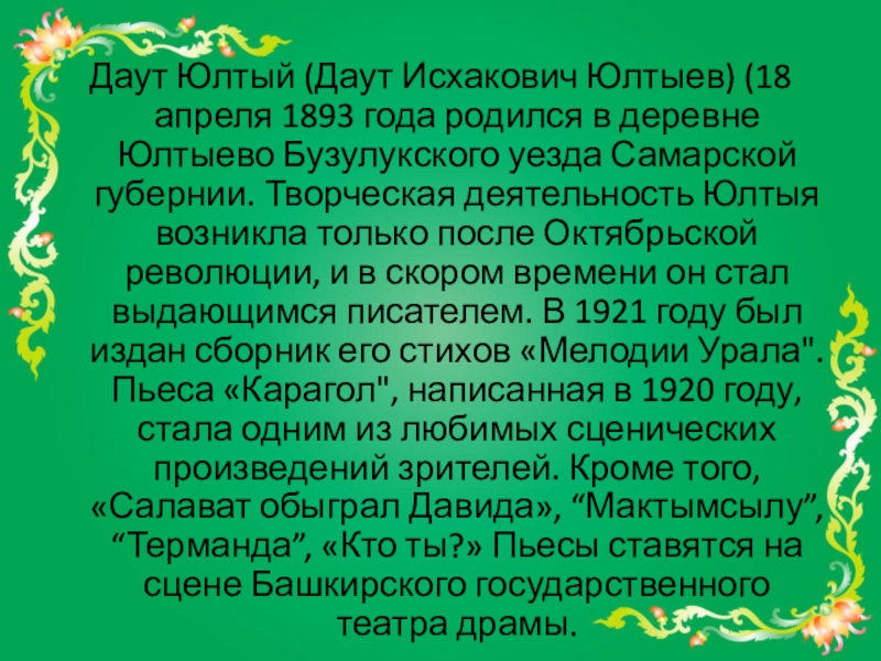 Слайд 12Даут Юлтый (Даут Исхакович Юлтыев) (18 апреля 1893 года родился