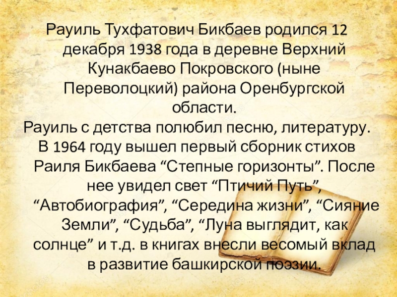 Слайд 10Рауиль Тухфатович Бикбаев родился 12 декабря 1938 года в деревне