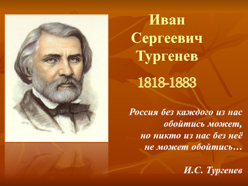 Иван Сергеевич Тургенев1818-1883Россия без каждого из нас обойтись может, но никто из нас без неё не