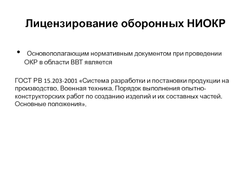 Слайд 1Лицензирование деятельности НИОКР и ее особенности для оборонной отросли
