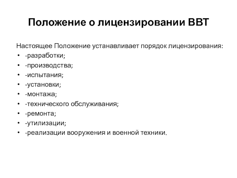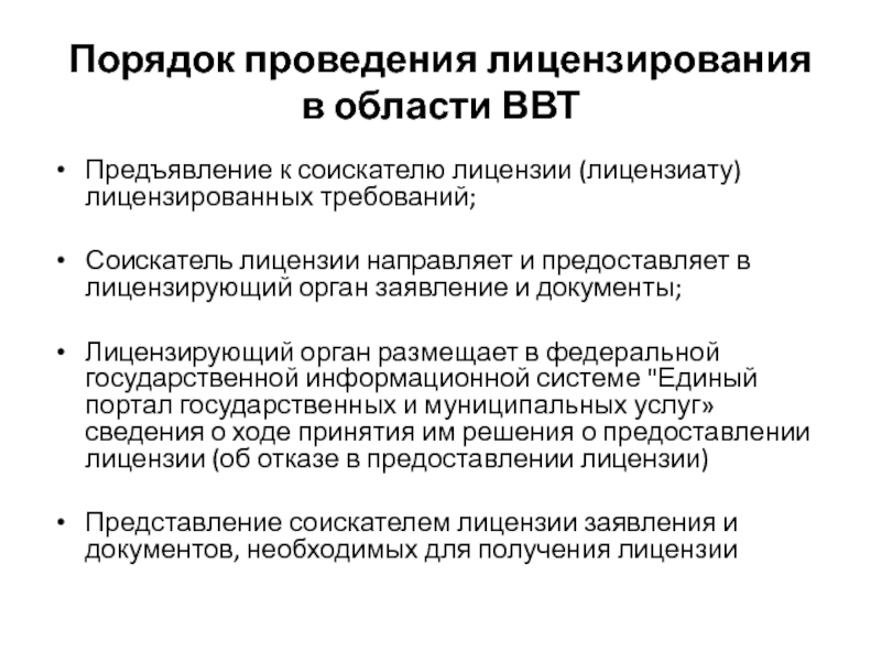 Слайд 8Порядок проведения лицензирования в области ВВТ