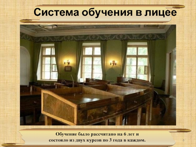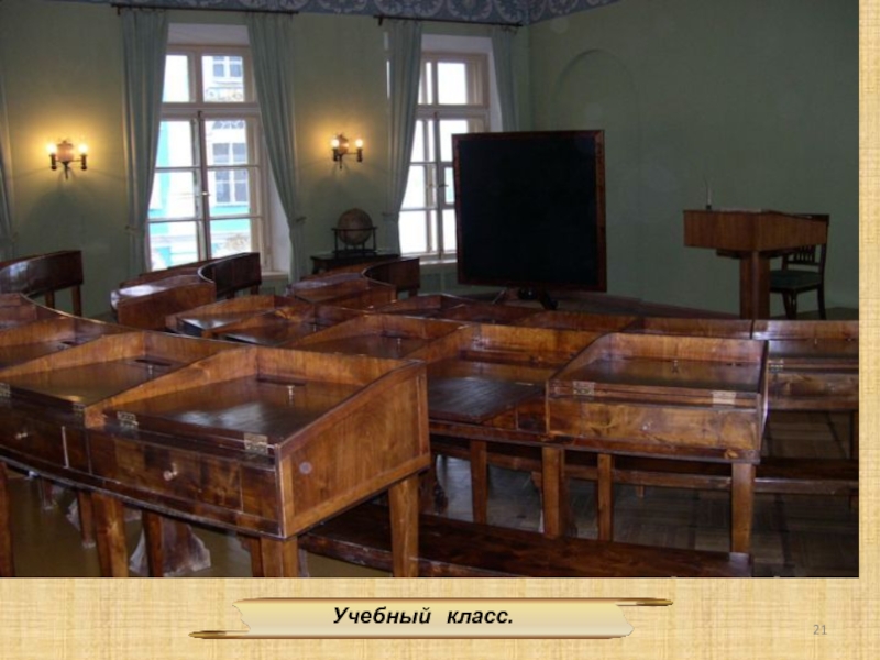 Слайд 23Каждому лицеисту полагалась отдельная комната, классный стол (конторка), комод и