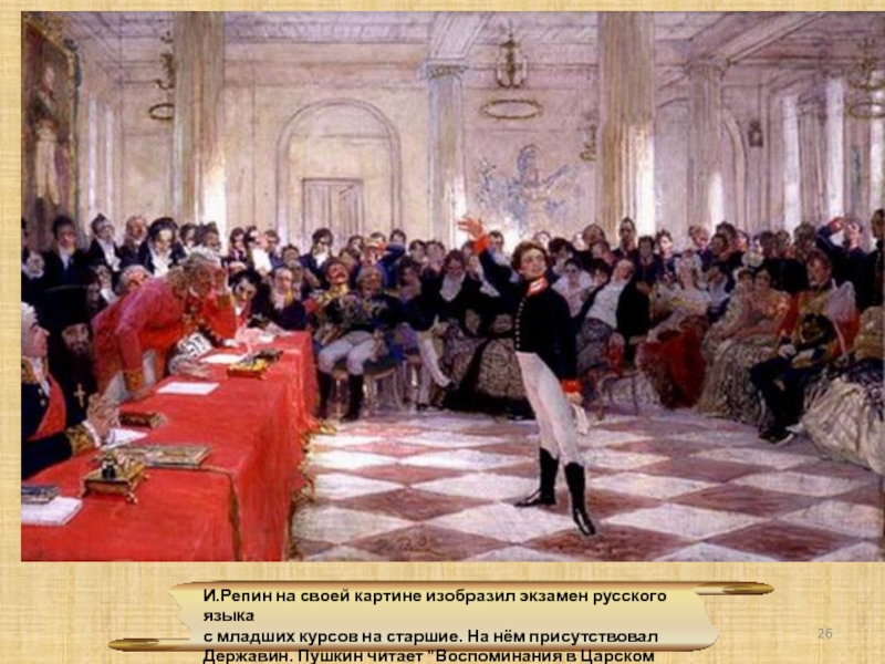 Слайд 26И.Репин на своей картине изобразил экзамен русского языка