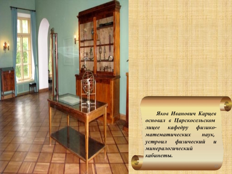 Яков Иванович Карцев основал в Царскосельском лицее кафедру физико-математических наук,