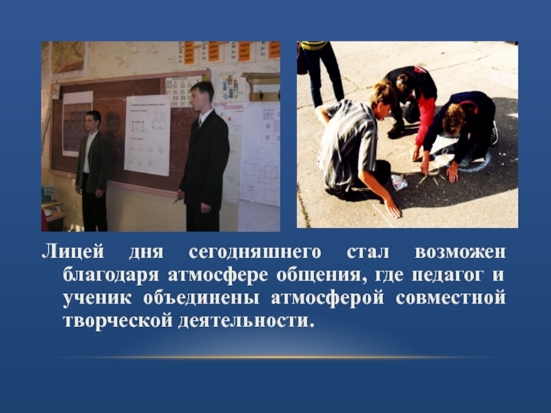Слайд 37Лицей дня сегодняшнего стал возможен благодаря атмосфере общения, где педагог