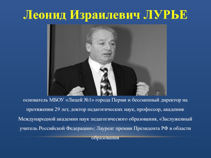 основатель МБОУ «Лицей №1» города Перми и бессменный директор