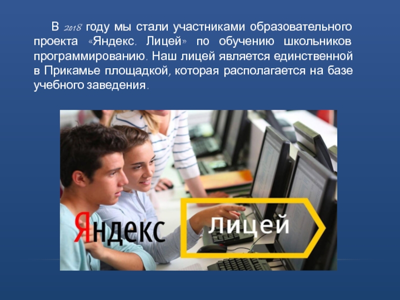 «Яндекс. Лицей» по обучению школьников программированию. Наш лицей является единственной