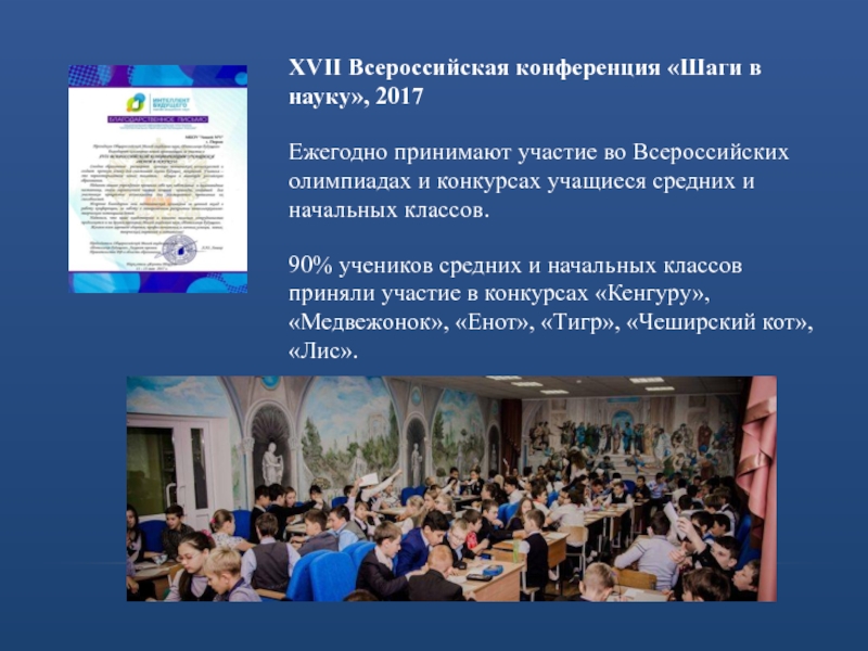 Всероссийских олимпиадах и конкурсах учащиеся средних и начальных классов.