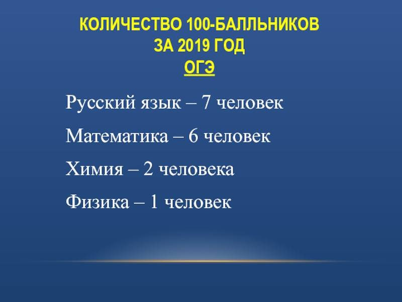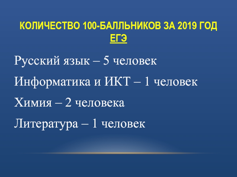 Слайд 23КОЛИЧЕСТВО 100-БАЛЛЬНИКОВ ЗА 2019 ГОД