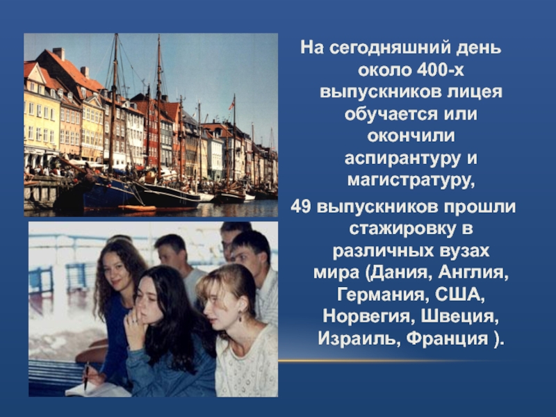 Слайд 36На сегодняшний день около 400-х выпускников лицея обучается или окончили