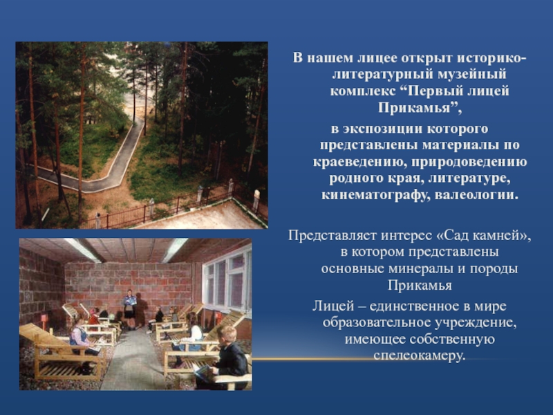 Лицей – единственное в мире образовательное учреждение, имеющее собственную спелеокамеру.