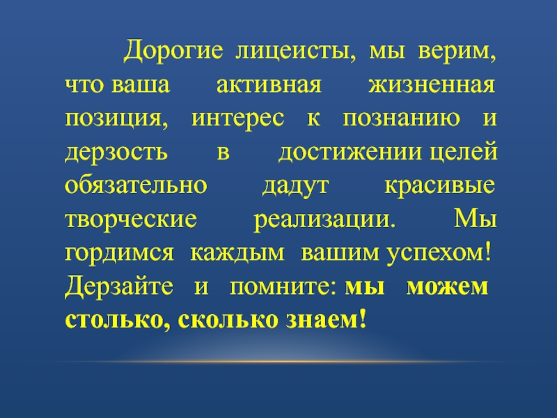 Слайд 39 Дорогие лицеисты, мы верим, что ваша активная жизненная