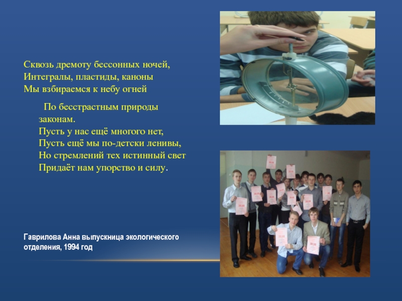 Гаврилова Анна выпускница экологического отделения, 1994 год