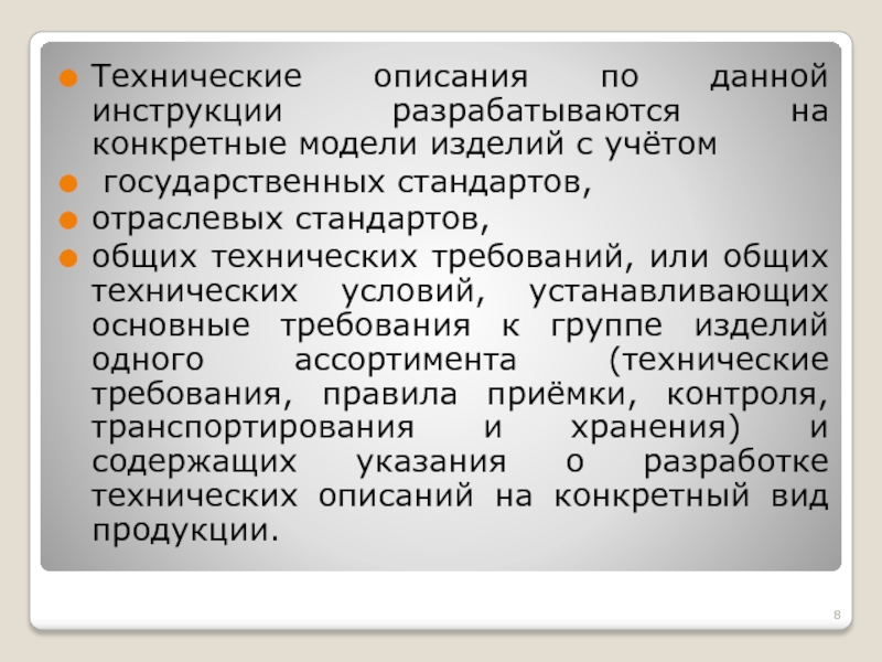 Слайд 8Технические описания по данной инструкции разрабатываются на конкретные модели изделий