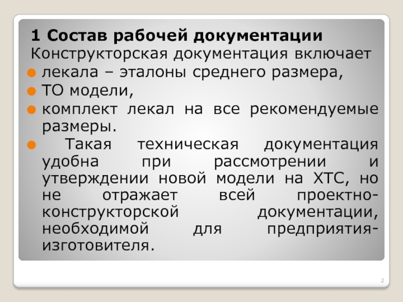 техническая документация удобна при рассмотрении и утверждении новой модели на ХТС, но не отражает всей проектно-конструкторской документации, необходимой для предприятия-изготовителя.