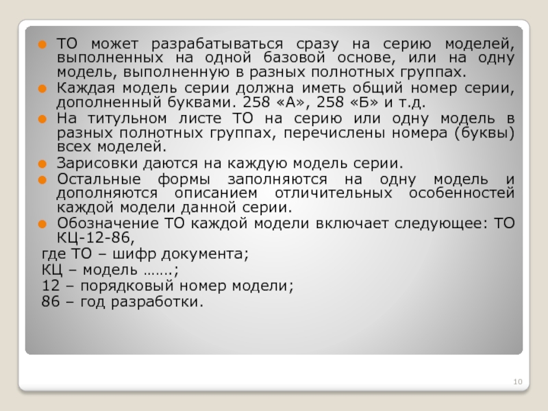 Слайд 10ТО может разрабатываться сразу на серию моделей, выполненных на одной