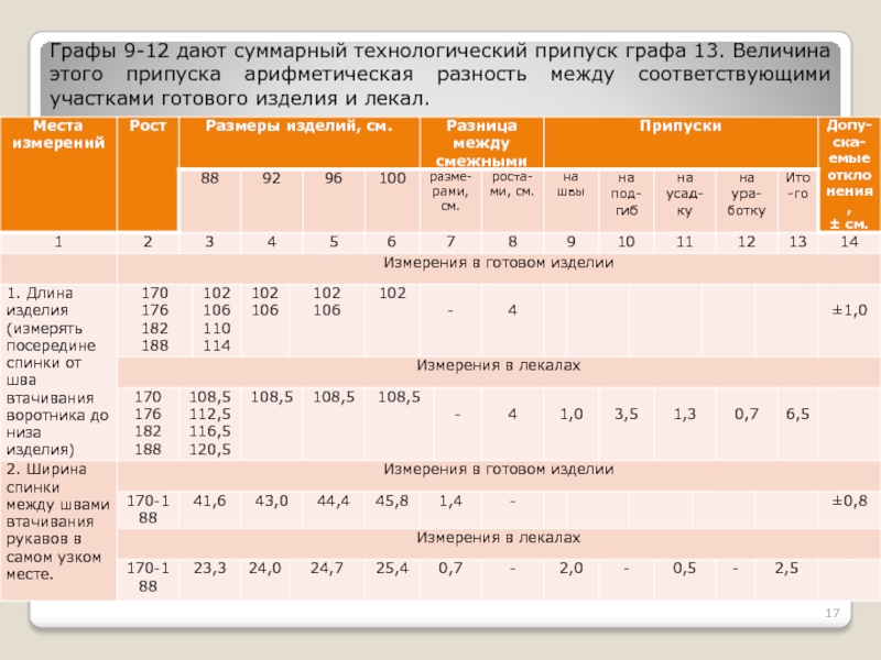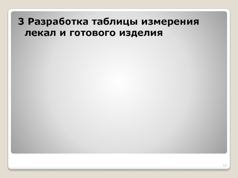 Слайд 113 Разработка таблицы измерения лекал и готового изделия