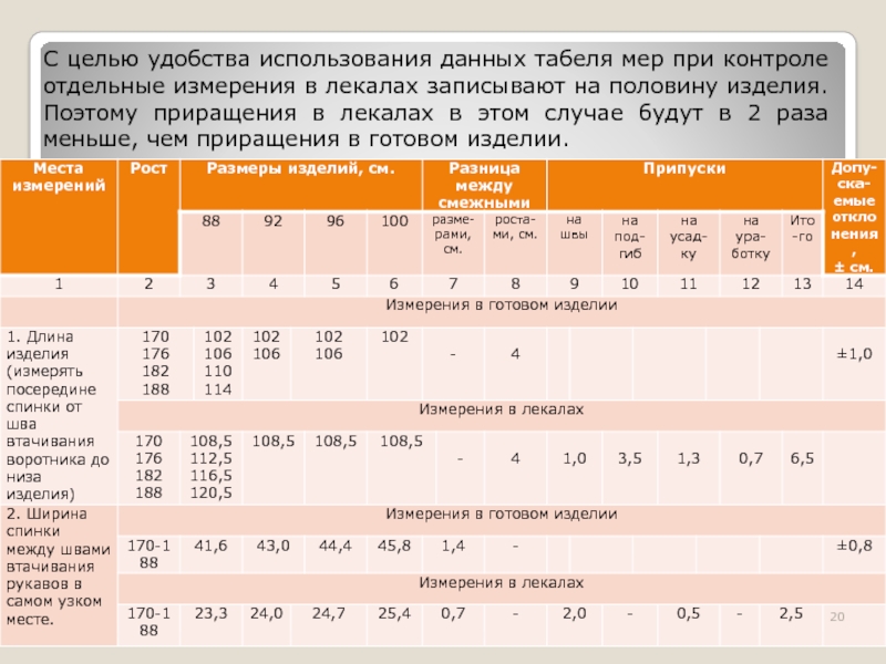 Слайд 20С целью удобства использования данных табеля мер при контроле отдельные