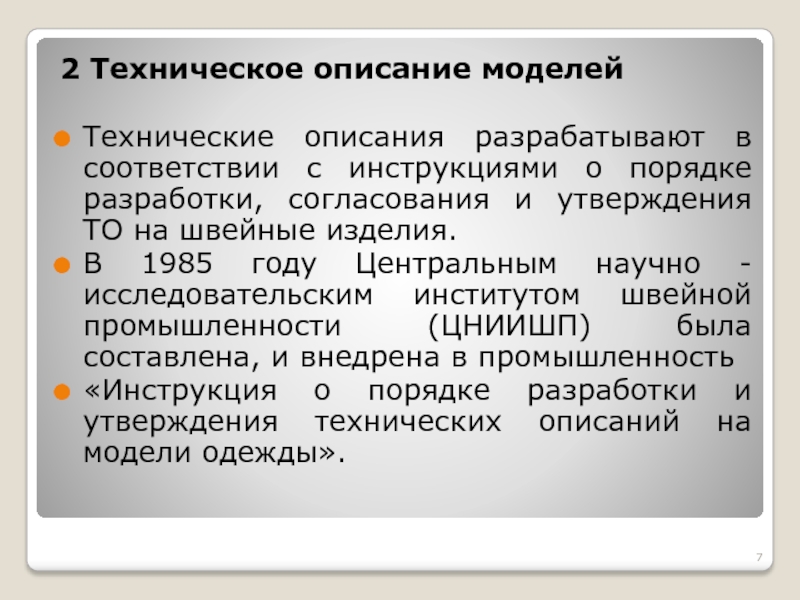 «Инструкция о порядке разработки и утверждения технических описаний на модели одежды».