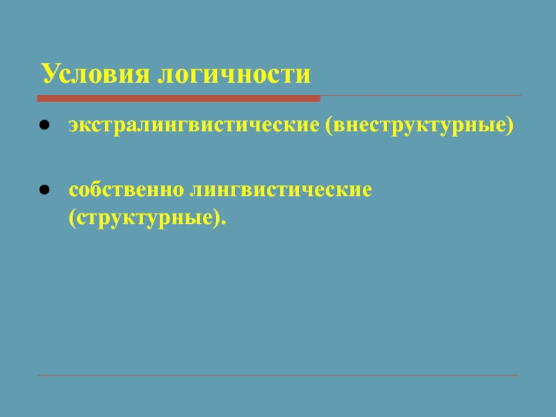 Экстралингвистическим, или внеструктурным, условием логичности речи является умение логично мыслить;