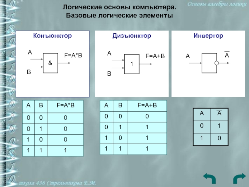 И (конъюнктор), ИЛИ (дизъюнктор), НЕ (инвертор)
