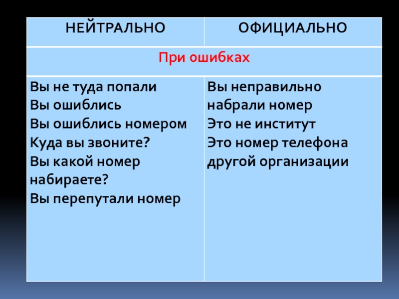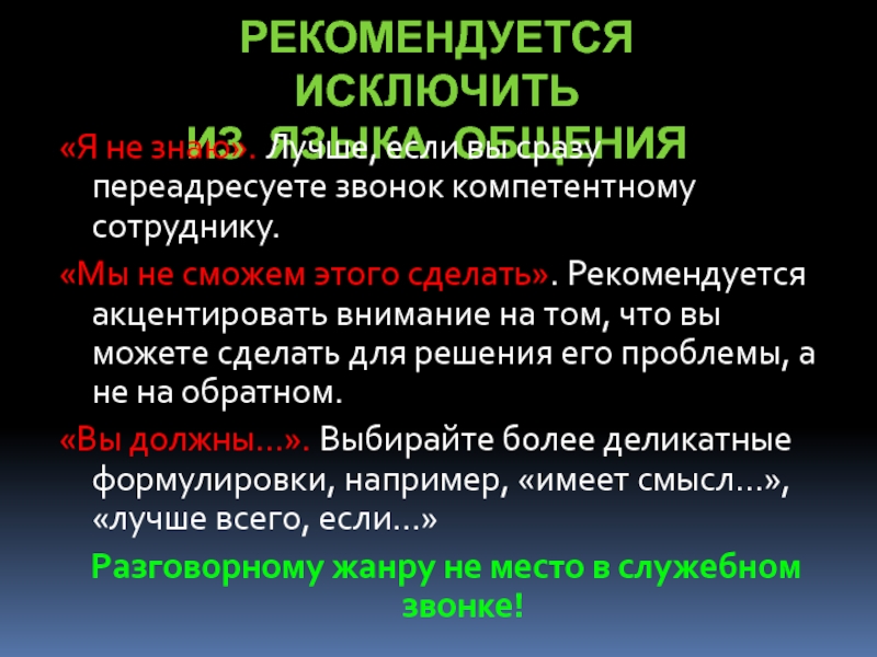 Разговорному жанру не место в служебном звонке!