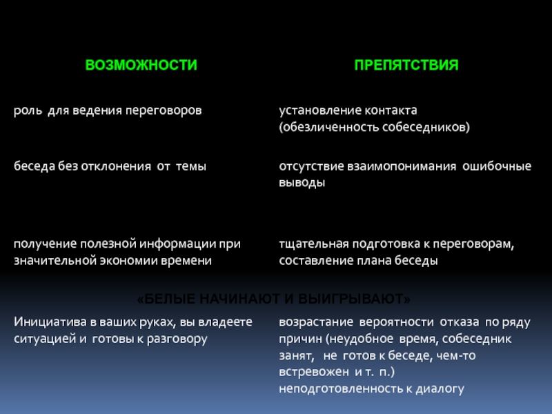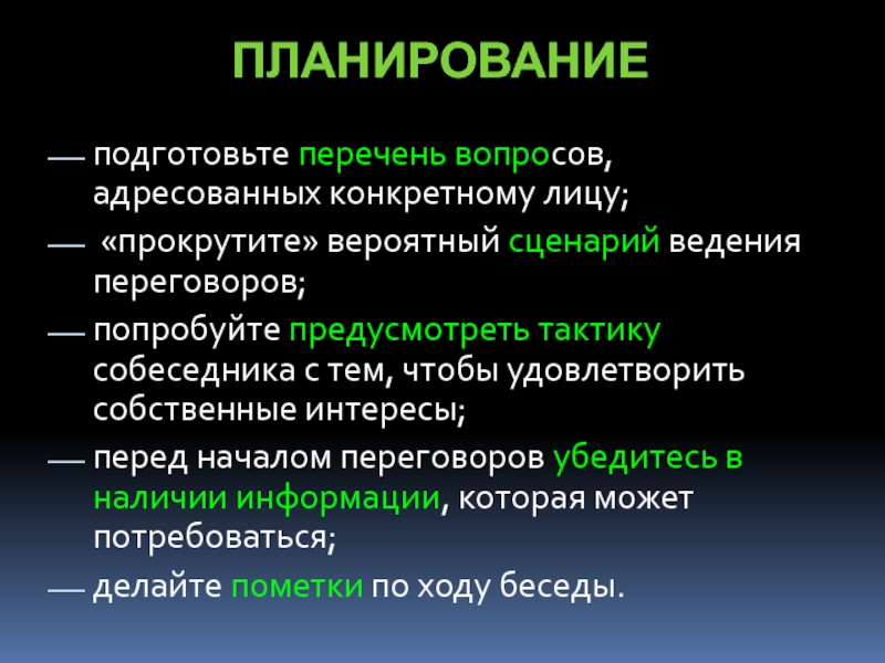 - Сформулируйте основные вопросы и варианты ответов собеседника;
