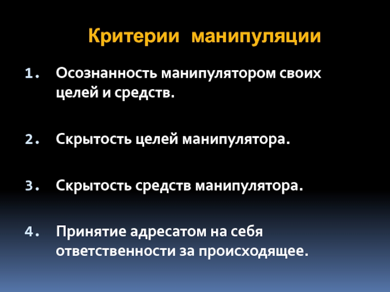 Слайд 11Критерии манипуляции