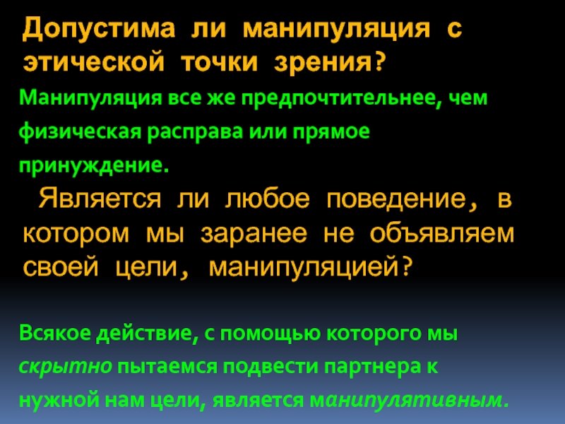 Слайд 10Допустима ли манипуляция с этической точки зрения?