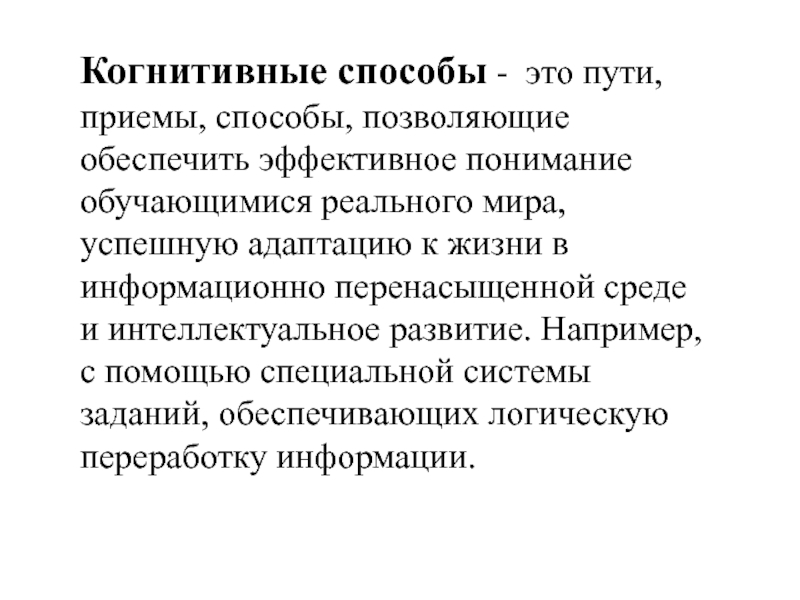 Слайд 3Когнитивные способы - это пути, приемы, способы, позволяющие обеспечить эффективное