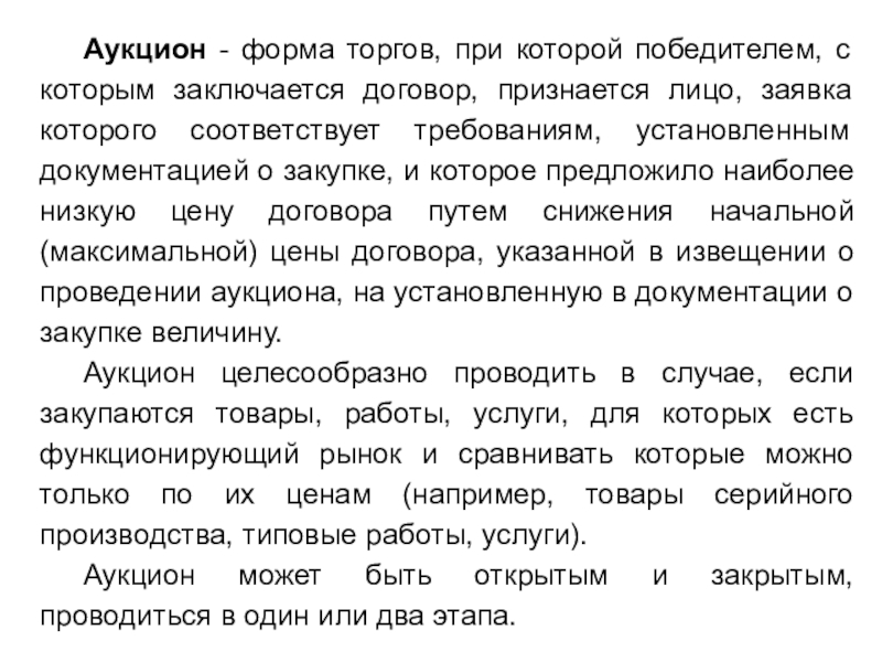 - аукцион (открытый аукцион, аукцион в электронной форме, закрытый аукцион),